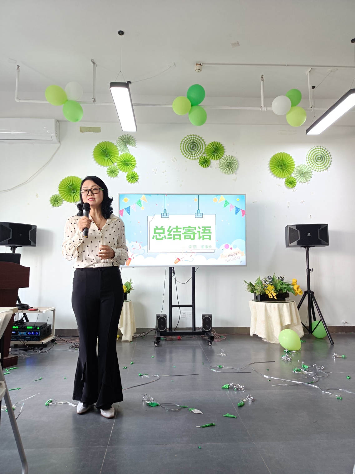感谢李丽董事长上台致辞,为寿星们送上最真挚的祝福。